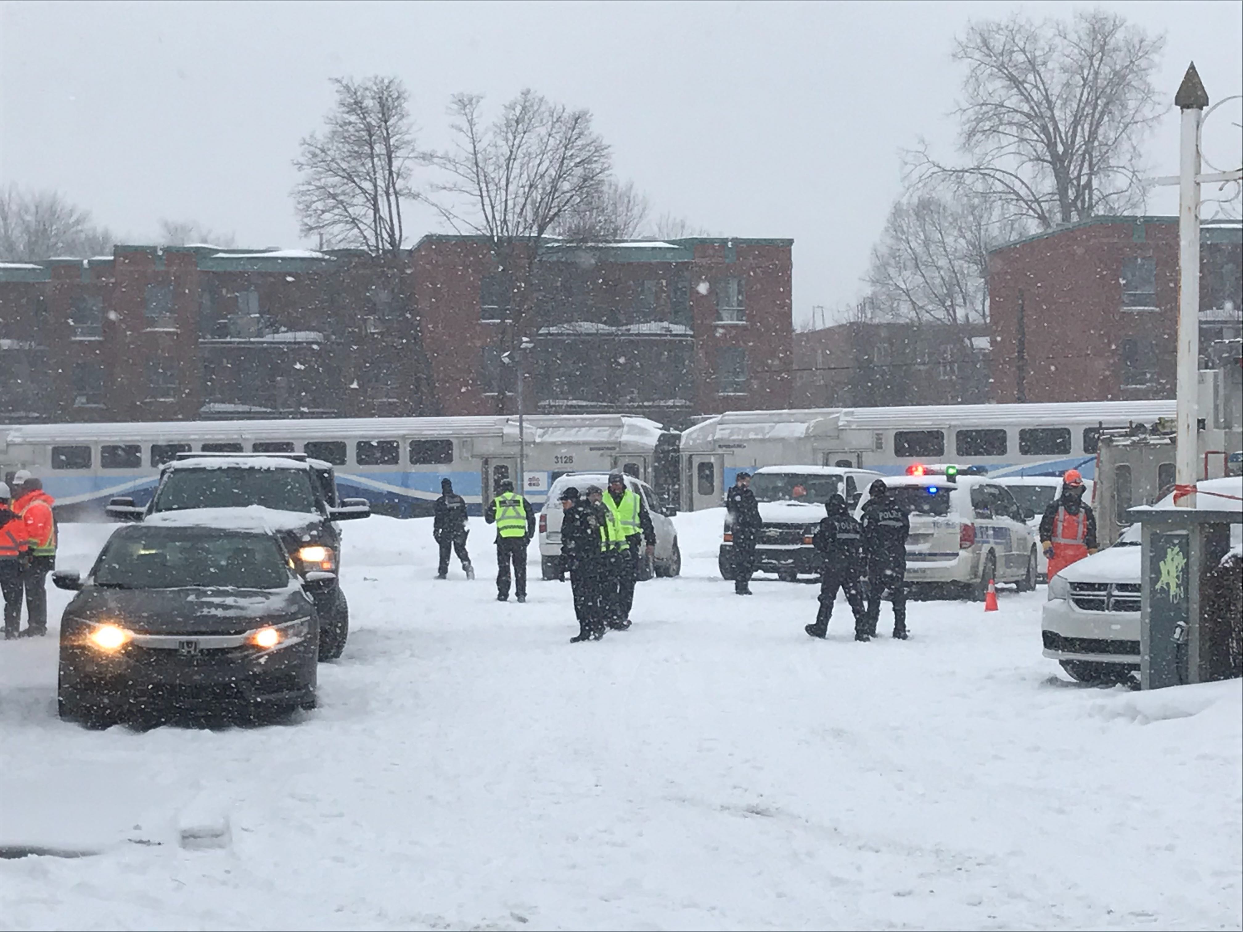 The vehicle was heading east on Gouin Boulevard when it was struck by the train, according to police.