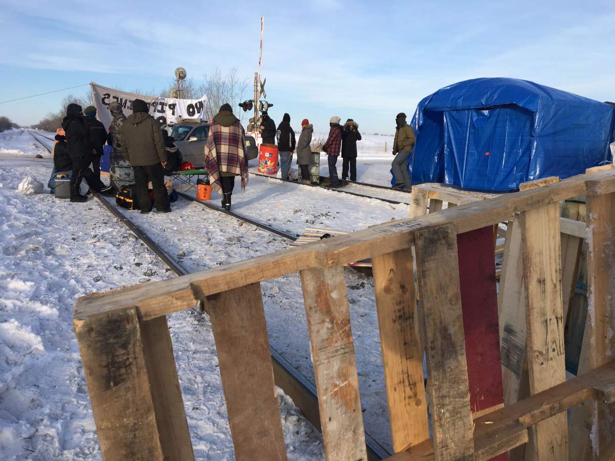 Demonstrators said a train came down the line just after they arrived. The train did stop and ended up backing up, the demonstrators told Global News.
