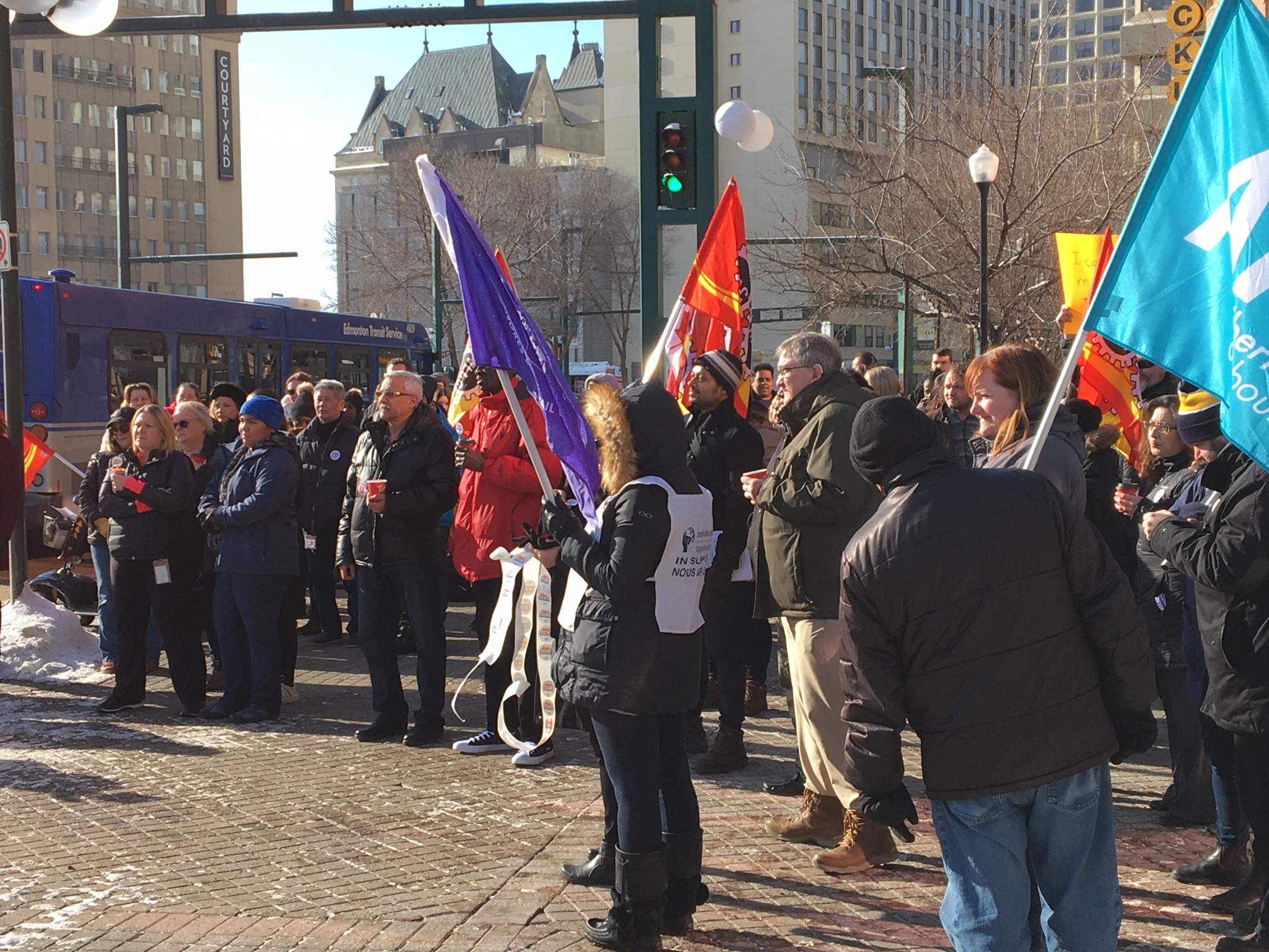 Approximately 100 people gathered in downtown Edmonton Wednesday to voice their continued concerns over the Phoenix pay system.