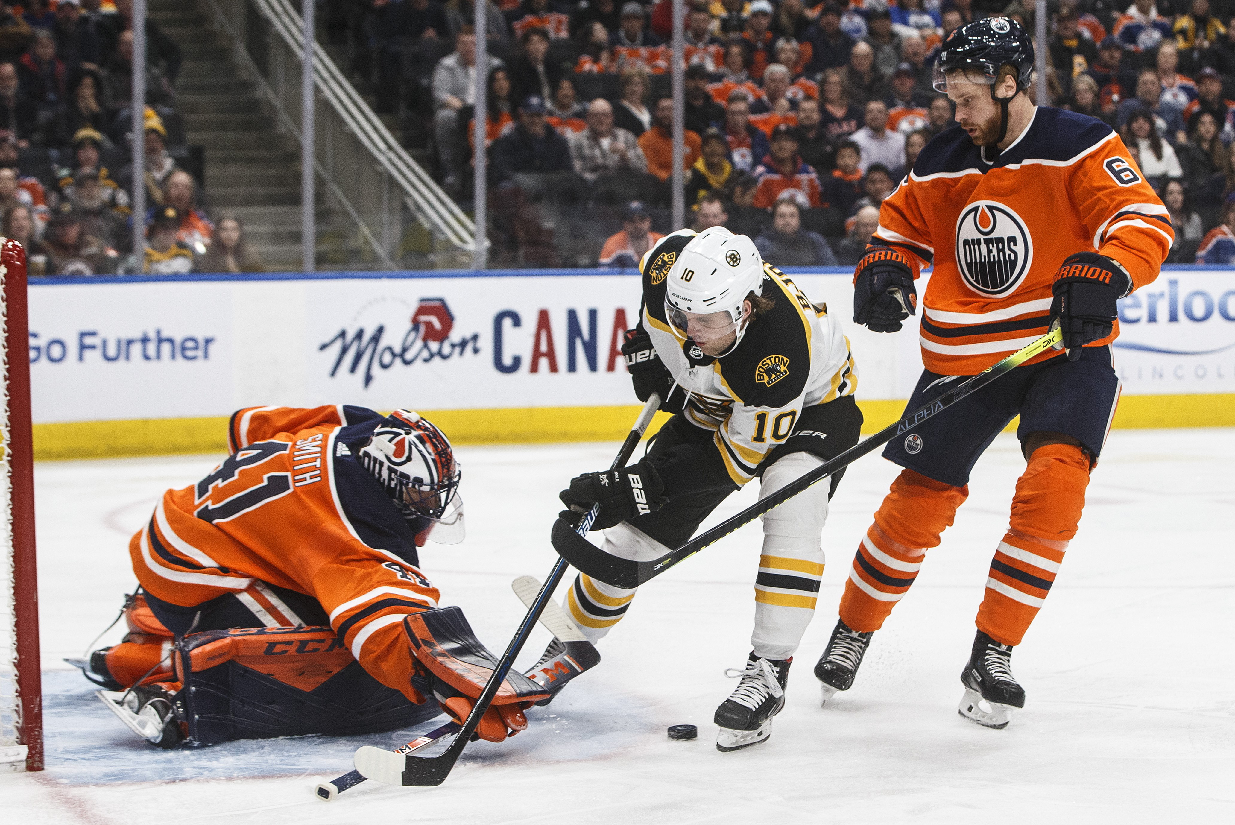 The Oilers were fortunate to get out of the first period as the Bruins earned a 10-2 advantage in shots.