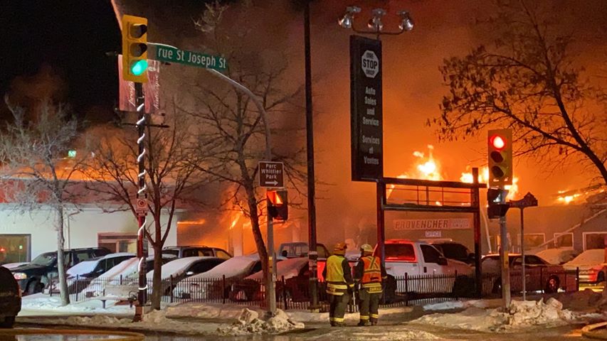 Henry’s Provencher Autobody and Frameworks went up in flames and platoon chief Alden Darragh said “extensive damage” has been done to the building.