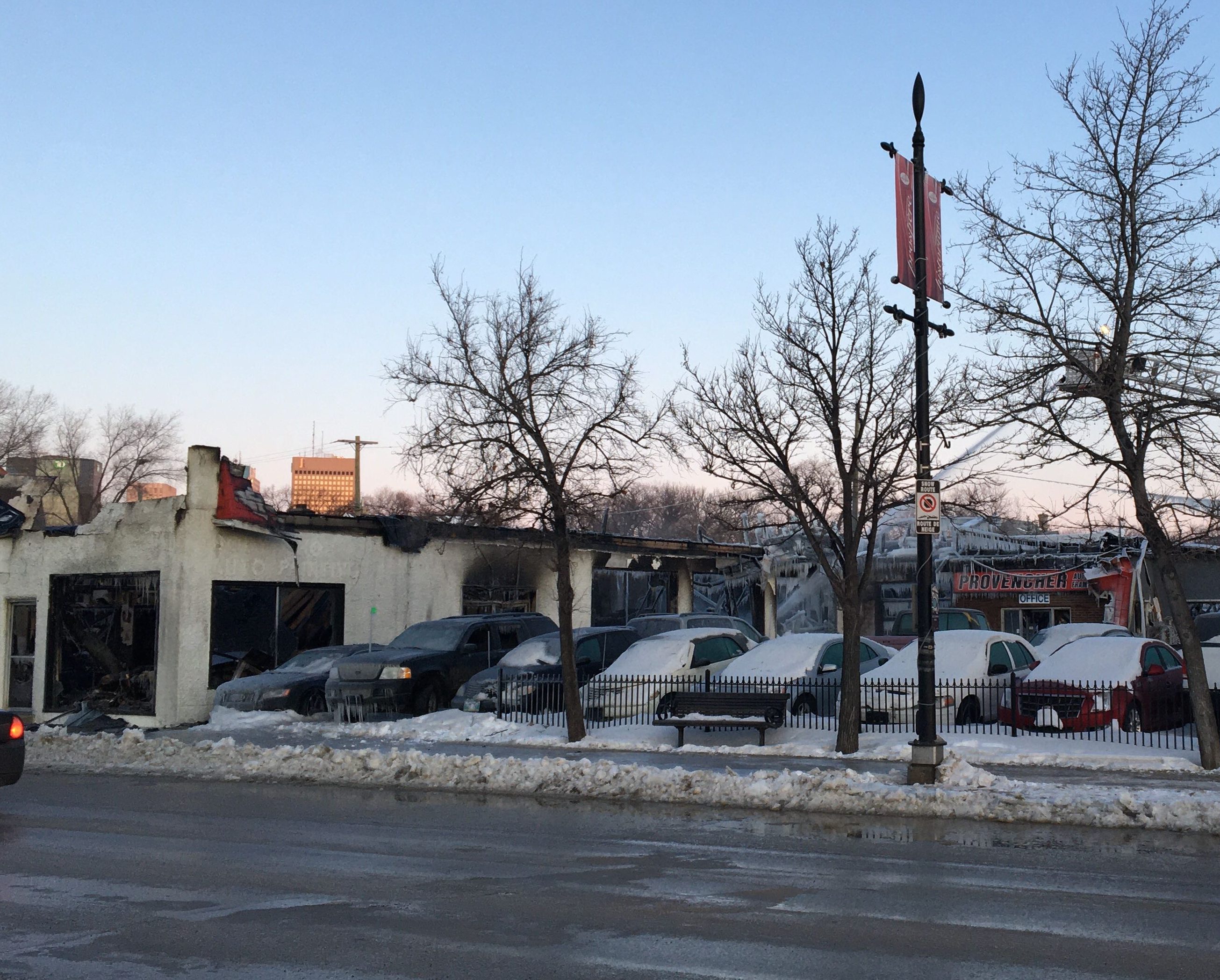 Friday morning, Winnipeg police closed Provencher Boulevard from Aulneau Street to Tache Avenue while crews continued to put out hot spots. The road re-opened just after 7 a.m.