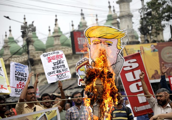 Elsewhere in New Delhi, dozens of supporters of the Communist Party of India carried a banner reading “Trump go back.” Anti-Trump street demonstrations also broke out in the cities of Gauhati in the northeast, Kolkata in the east and Hyderabad in the south.