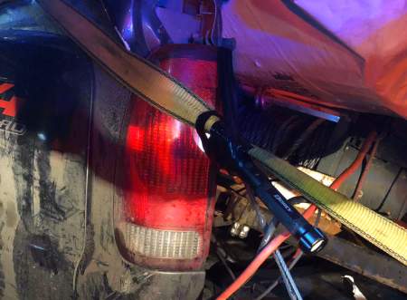 That included an insecure load, and more alarmingly, flashlights that had been rigged up to act as headlights and taillights.
