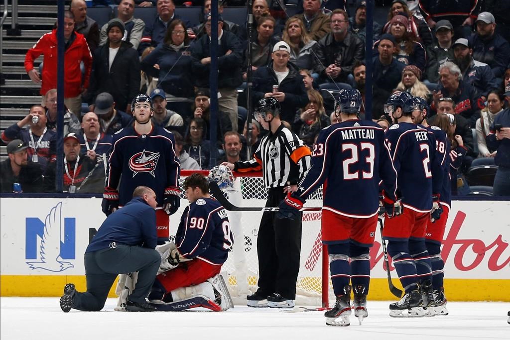 Columbus’ first win since Feb. 7 might have been a costly one after goaltender Elvis Merzlikins departed in the second following a big collision at the net with former Jackets forward Anthony Duclair.