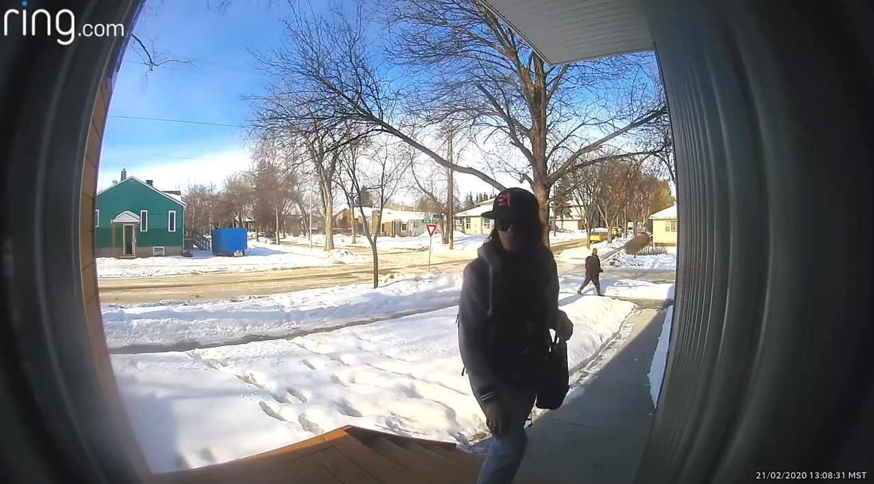 In a video posted to YouTube on Saturday, a woman can be seen walking up to the front door of someone’s home, taking a quick look around, then grabbing a package from the porch and walking away.