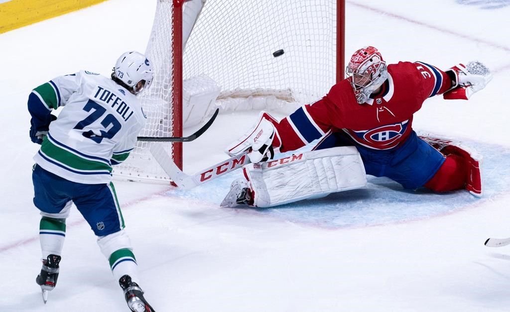 MONTREAL – Tyler Toffoli scored 1:35 into overtime to lift the Vancouver Canucks to a 4-3 win over the Montreal Canadiens on Tuesday.
