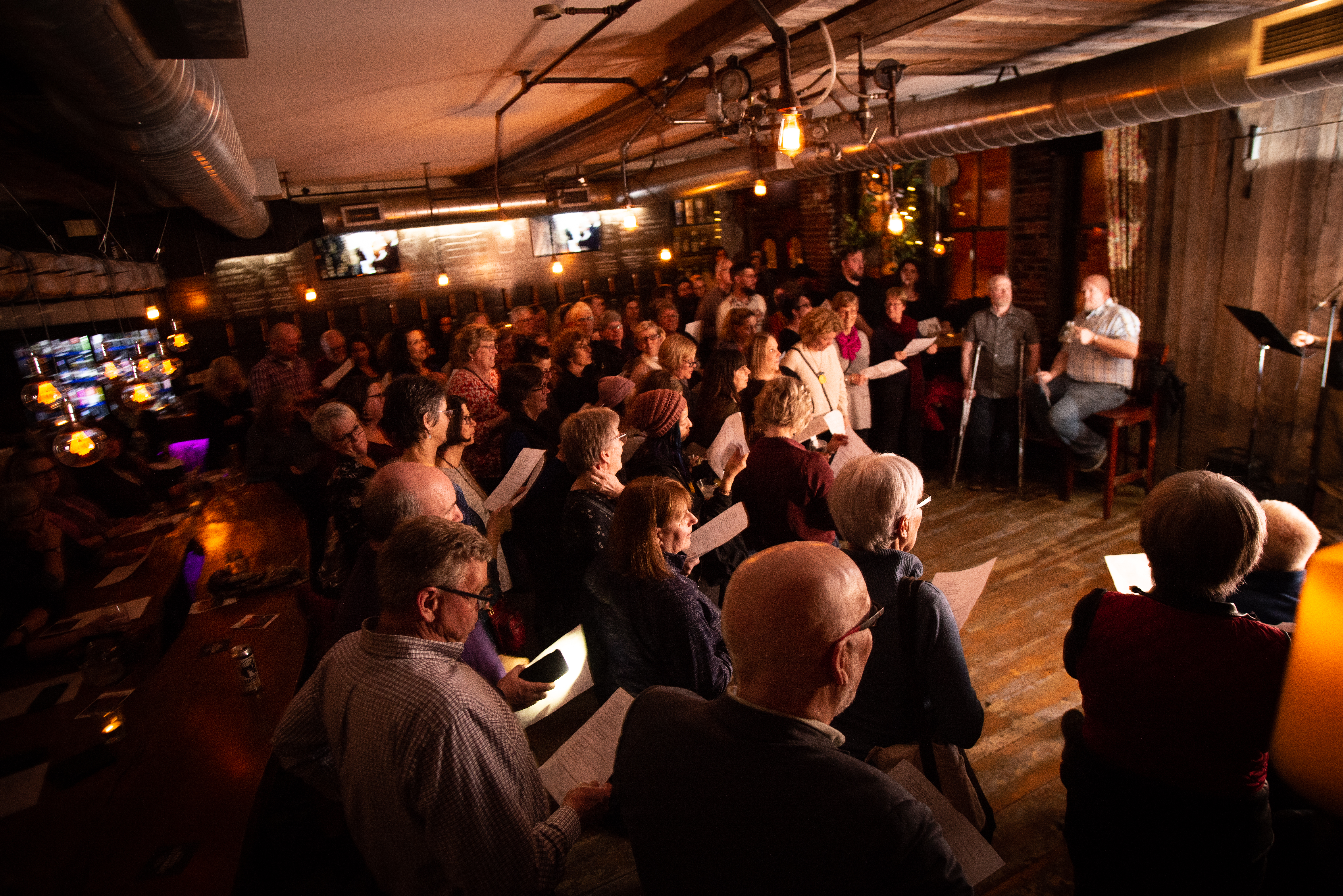 The Furnace Room bar in Moncton was packed to capacity on Tuesday evening for the city’s first bar choir sing along called “Moncton Sings” host by Festival Inspire.