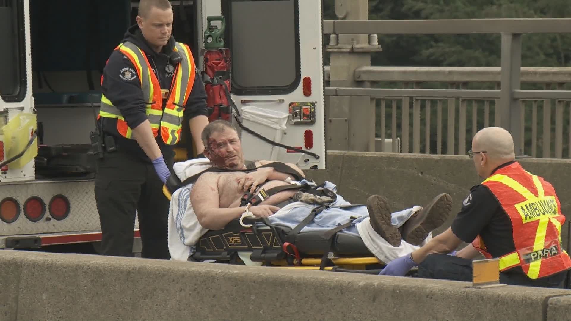 Police eventually stopped the man on the Capilano River Bridge in West Vancouver.