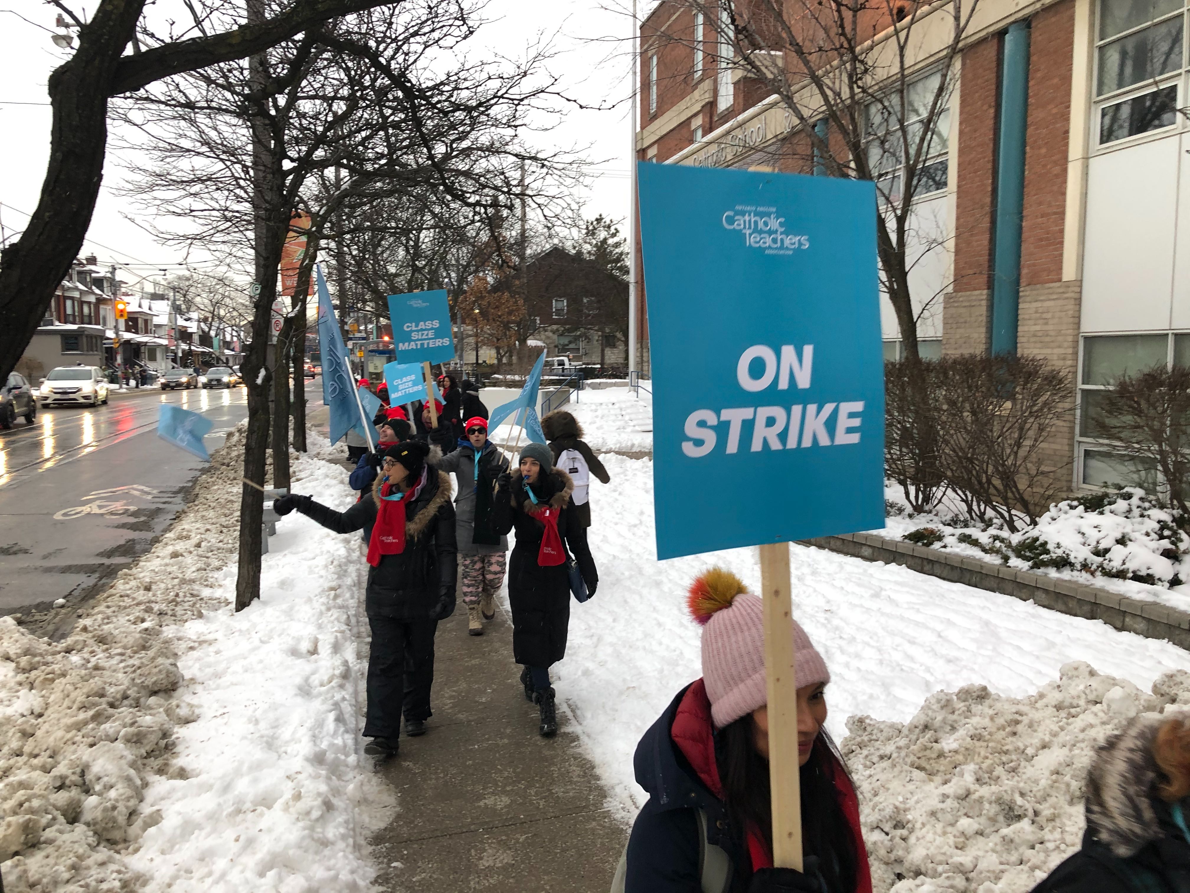 “Instead of coming to the table with a plan to reach an agreement, the government continued to insist on its deep, permanent cuts,” Stuart said in the statement announcing the strike. “All the while, the minister of education has continued his attempts to mislead the public by making baseless accusations against Catholic teachers and our association.”