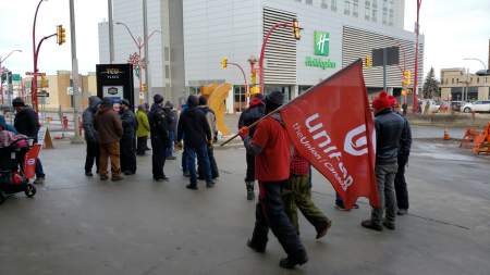 “These are the people who are funding the lockout, so we’re here to tell them to get informed,” said Unifor 594 president Kevin Bittman, who said the action was strictly “informational.”