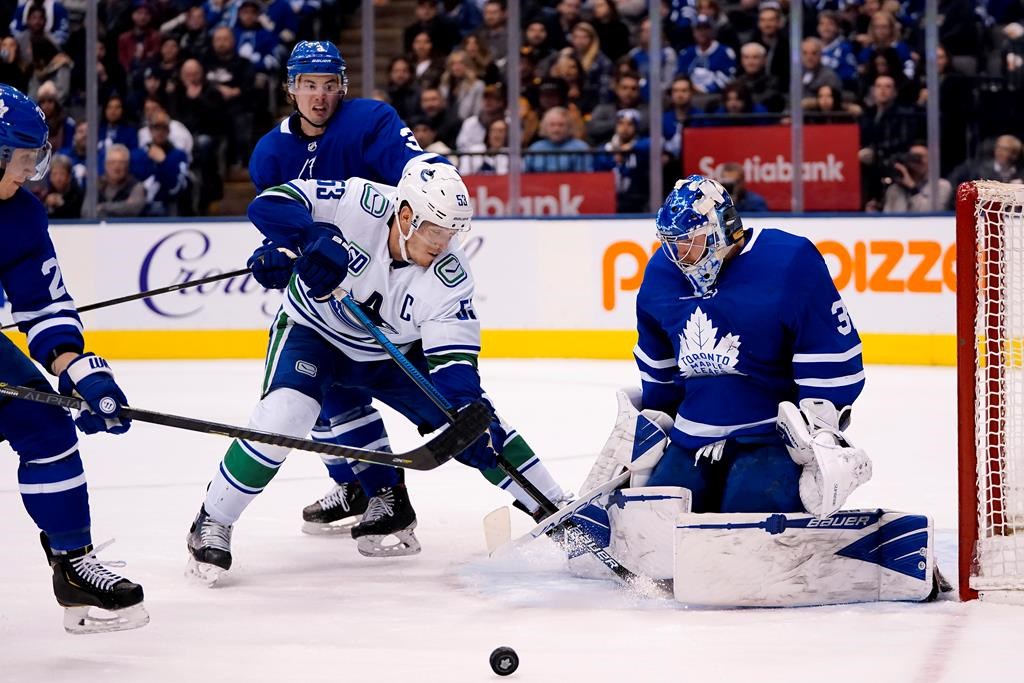 Frederik Andersen made his seventh straight start for Toronto and stopped 25 shots. Vancouver’s Thatcher Demko, in net for an injured Jacob Markstrom, finished with 26 saves.