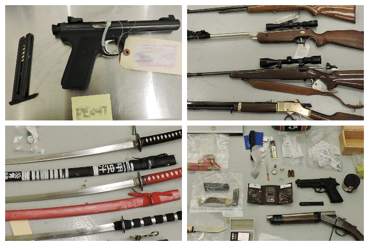 In a Monday, March 2 news release, RCMP said on Feb. 13, officers seized five long rifles, a restricted pistol with ammunition, debit and fuel cards, knives, swords, stolen business cheques, 12 grams of suspected fentanyl and 25 grams of what is believed to be cocaine from a house in the 5600 block of 53 Avenue.