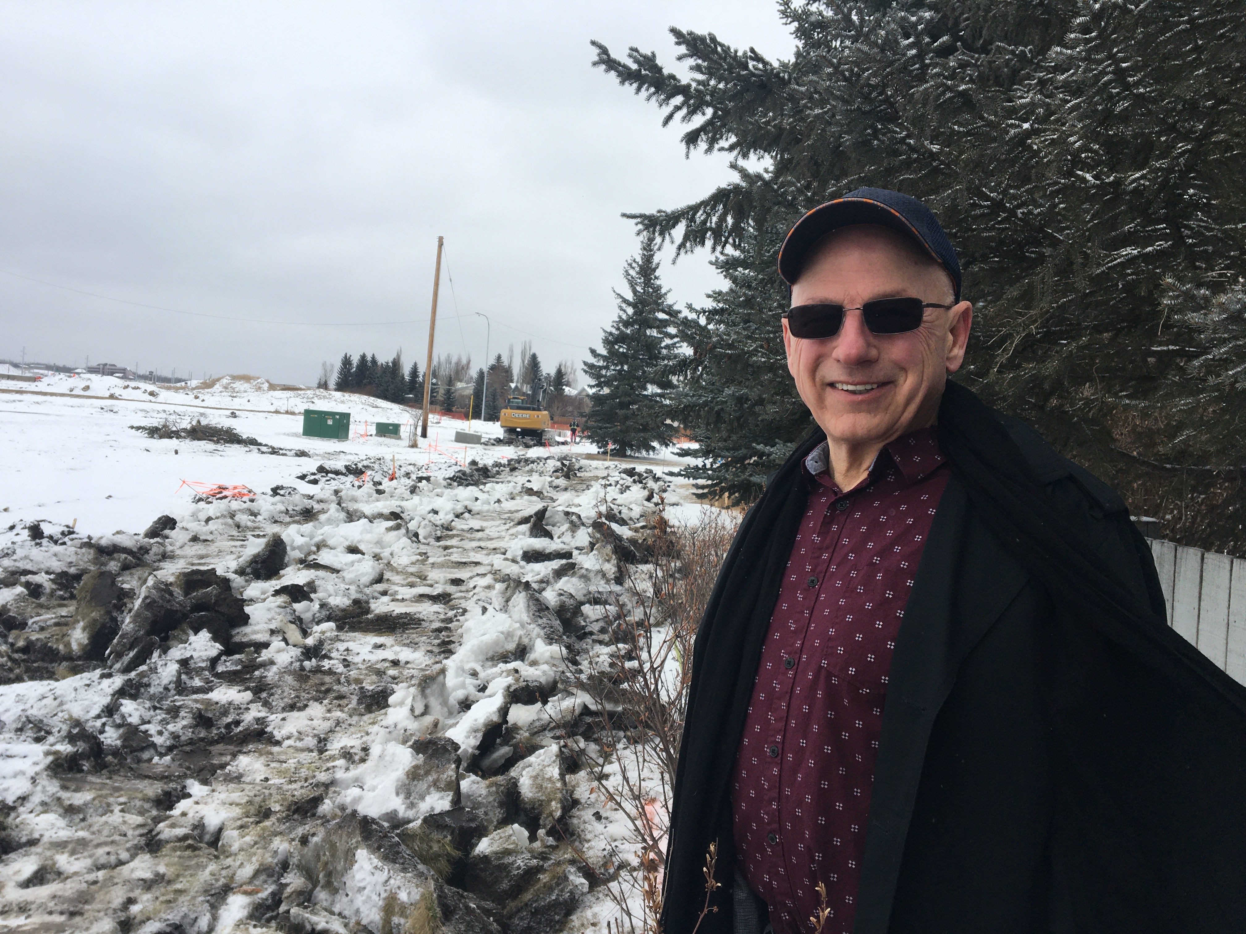 People living on Woodpath Terrace in southwest Calgary were surprised to see excavation equipment digging up the green space just beyond their backyards on Saturday.