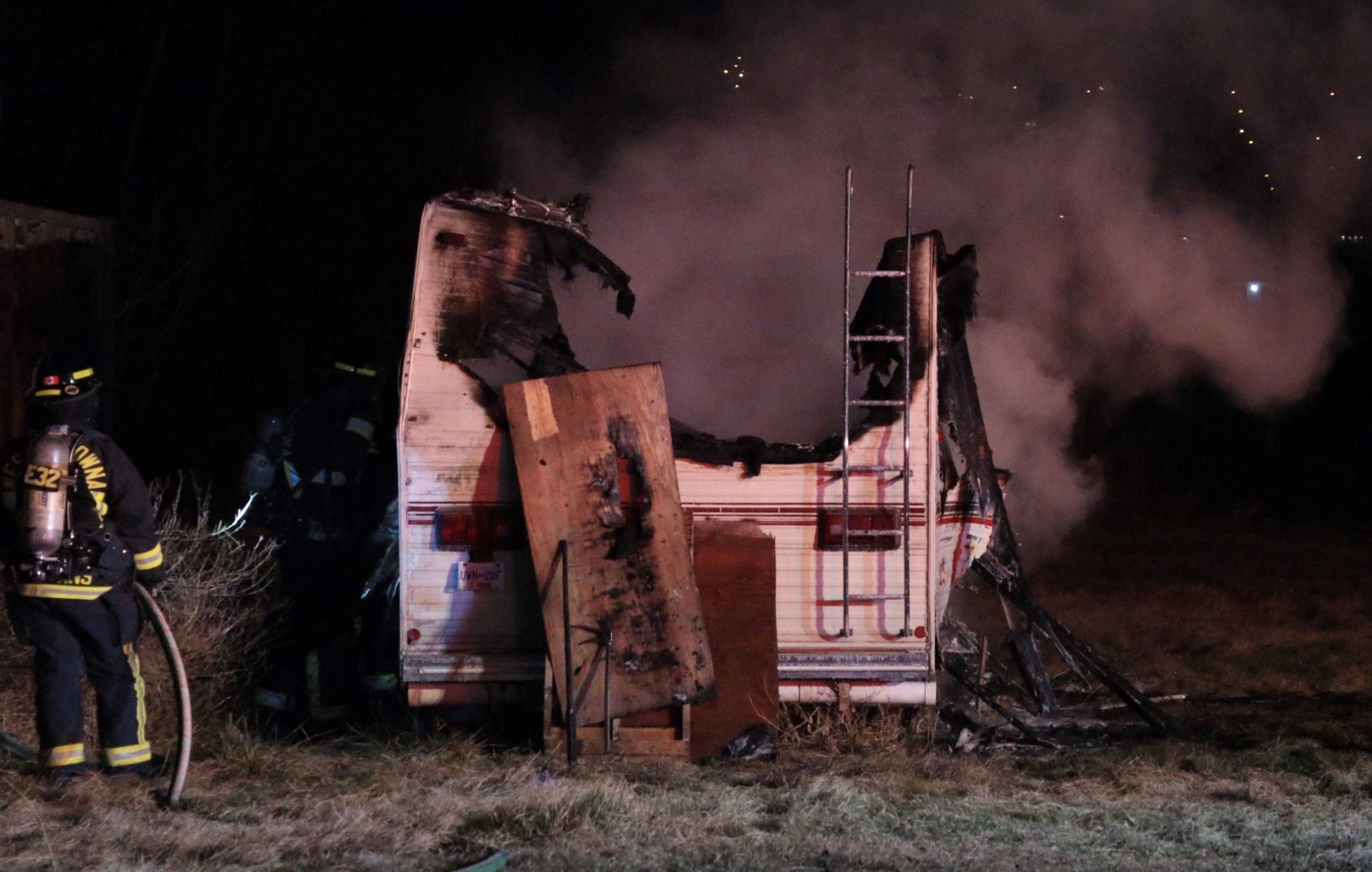 West Kelowna fire Chief Jason Brolund said the blaze is believed to have grown quickly and by the time fire crews arrived, the travel trailer was fully involved in flames.