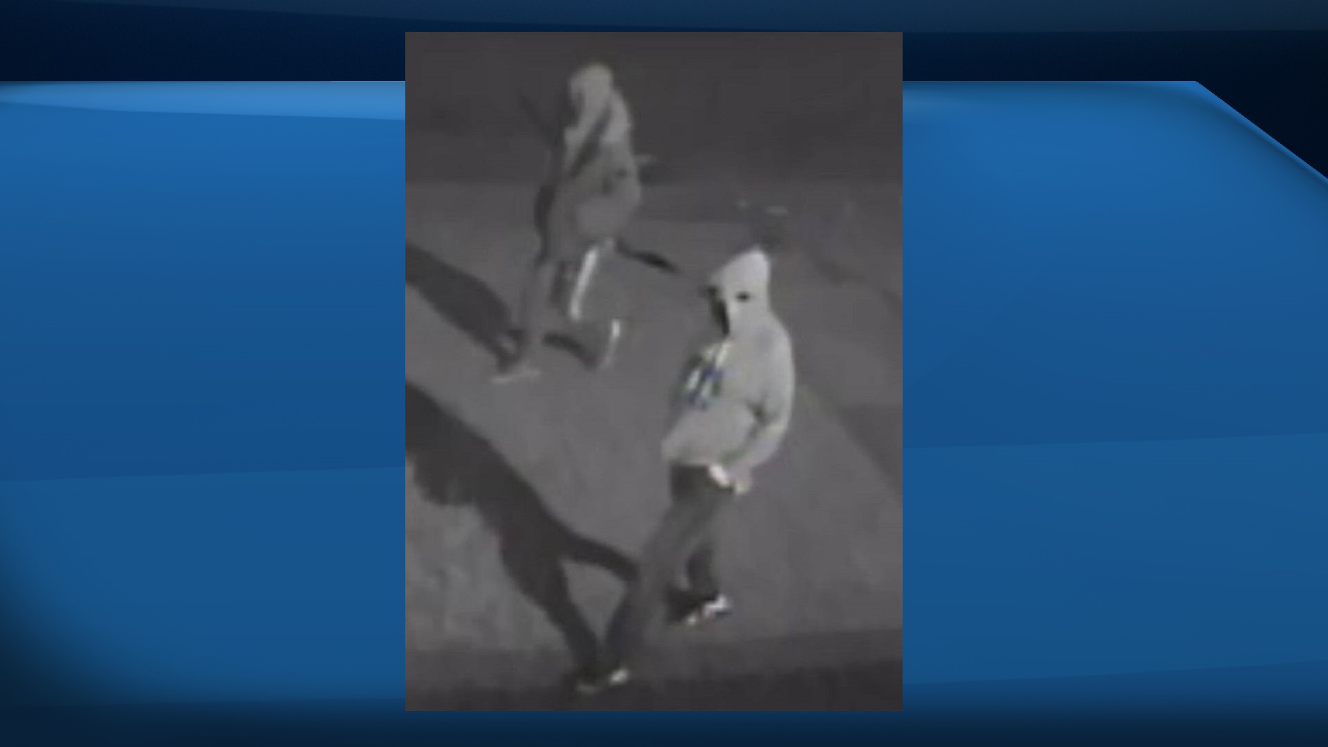 The first suspect is described as a tall man with a slim build. He was reportedly wearing a grey Roots hooded sweatshirt, a black mask, white gloves, blue jeans and black shoes with white soles at the time of the incident.