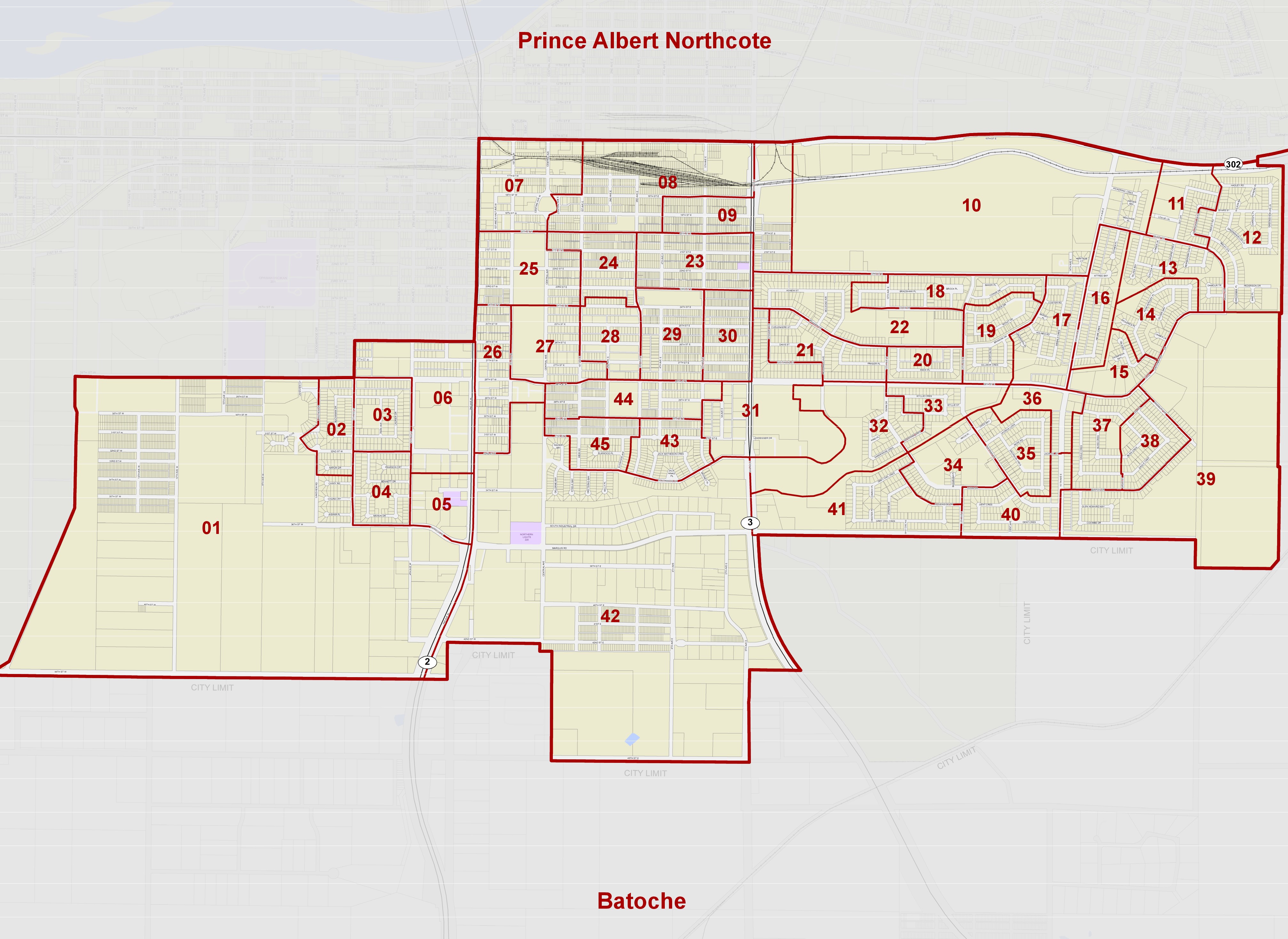 This is one of two ridings in the city of Prince Albert. Prince Albert Carlton encompasses the city south of the following northern boundary: west along Highway 302 from the city limits to 2nd Avenue West, south to 26th Street West, west to 6th Avenue West, south to 28th Street West and then west to 16th Avenue West and then south to the city limits.