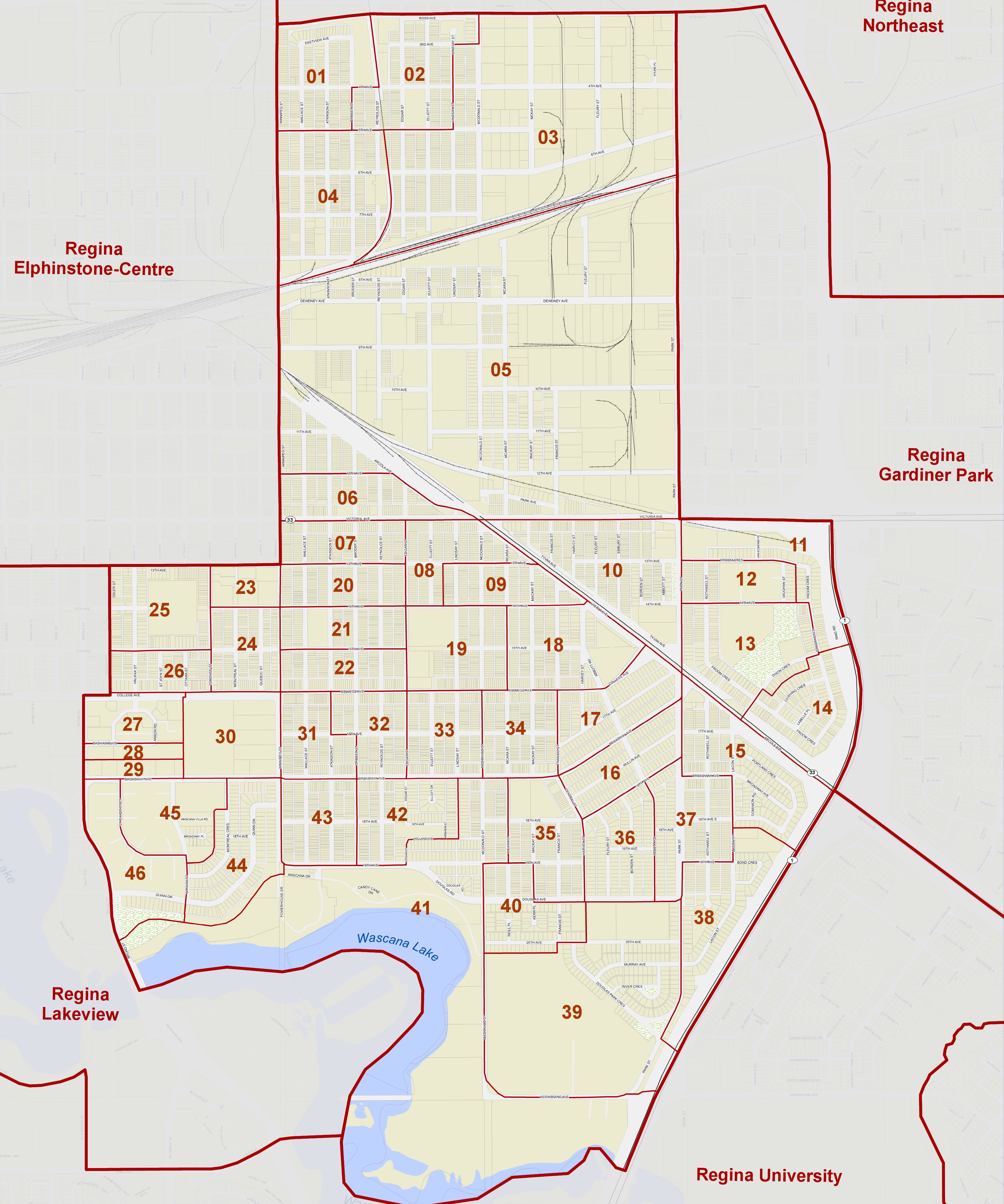 This district is in the central part of Regina and its boundaries are Ross Avenue to the north, Broad Street to the west, Wascana Lake to the south and Ring Road to the east.