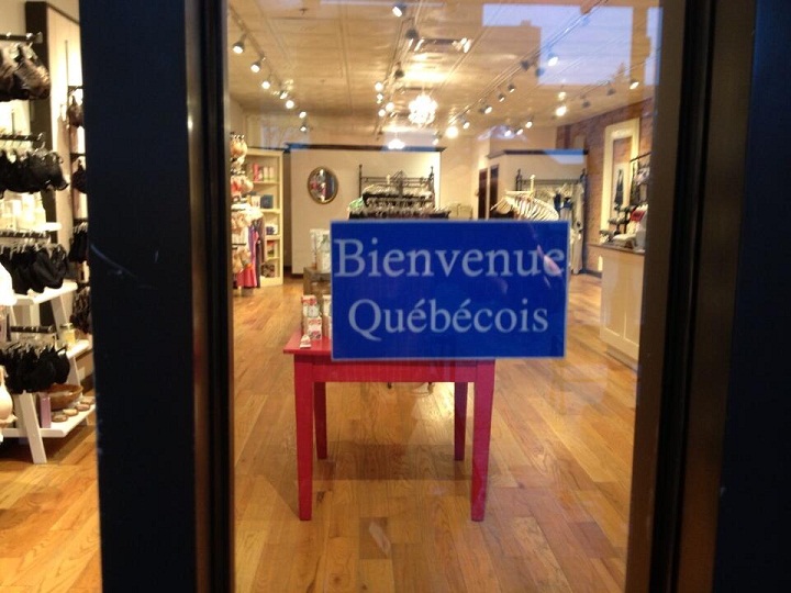 As a goodwill gesture, store fronts feature “Bienvenue Quebecois” signs.