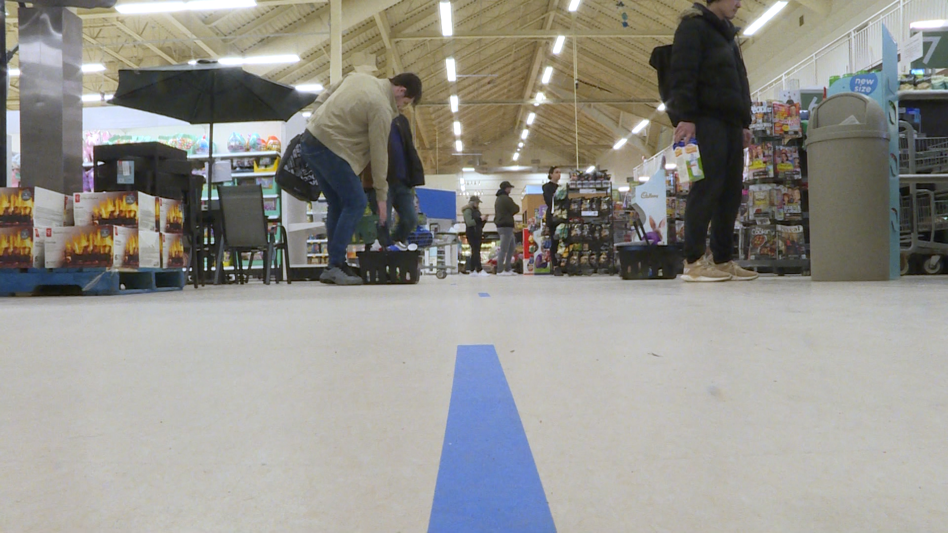 At the two Kingston, Ont., Loblaws locations, staff were seen labelling two-metre markers with blue and duct tape in front of the checkout and telling customers to stand behind each marker.
