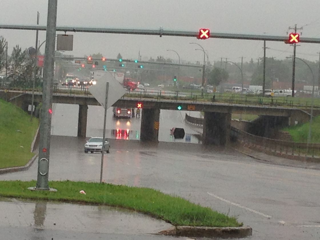 EDMONTON – Heavy rain and backed up drains in the City of Edmonton caused flooding in several areas and even shut down traffic on Tuesday.