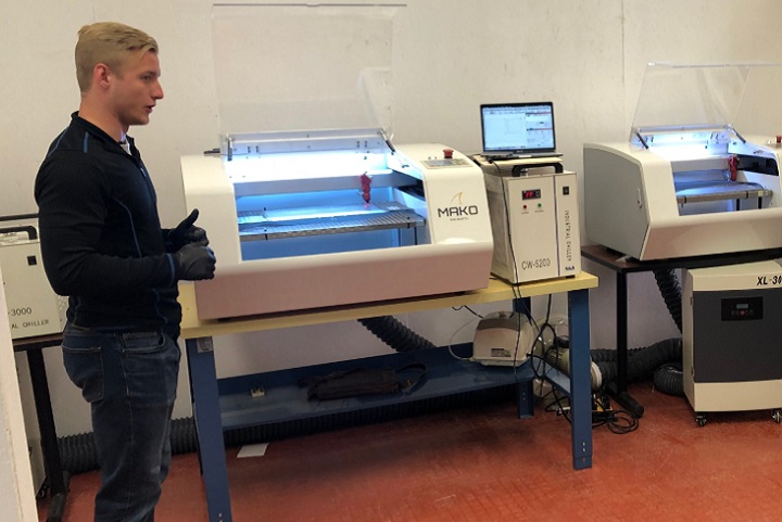 Many other companies have also been contributing to the effort while the plastic visors are being laser cut with the equipment the company normally sells to educators.