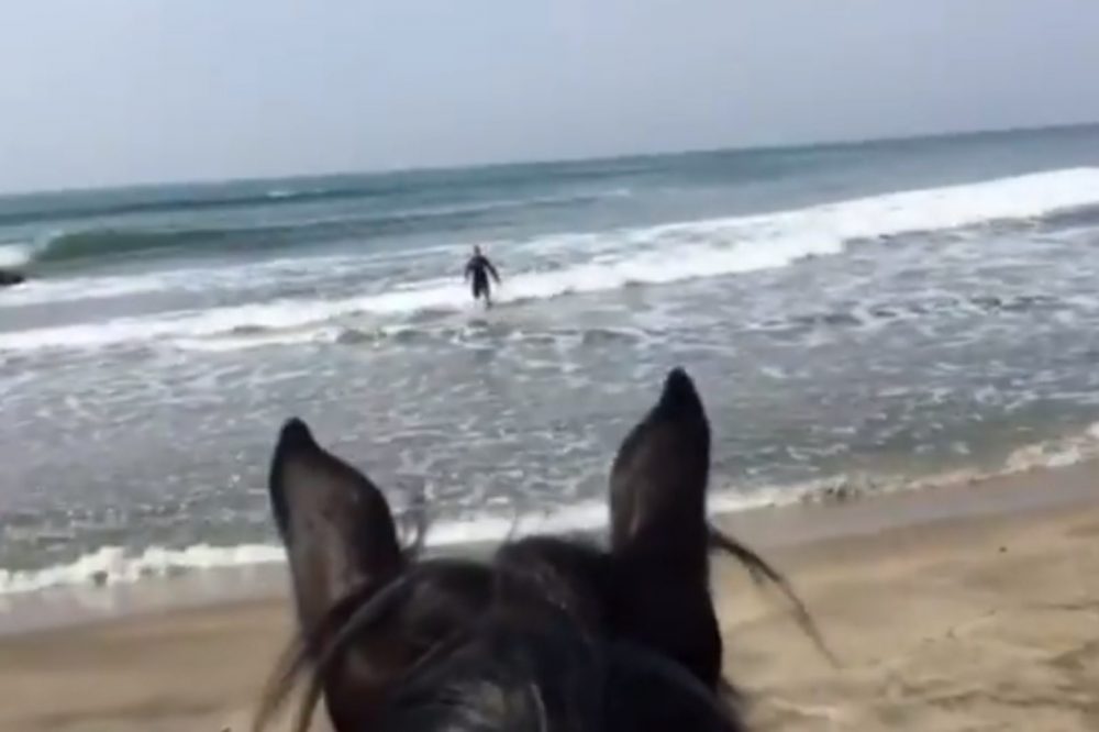 Bodycam footage released by Italian police on Wednesday shows two officers on horseback waiting patiently onshore for the surfer on a beach near Rome. The masked officers blow a whistle and flag the surfer down, then wait for him to trudge ashore.