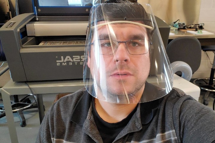 The school’s research and innovation team is also manufacturing temporary face shields for the Royal Victoria Regional Health Centre (RVH) in Barrie, Ont. until new ones can be mass-produced.