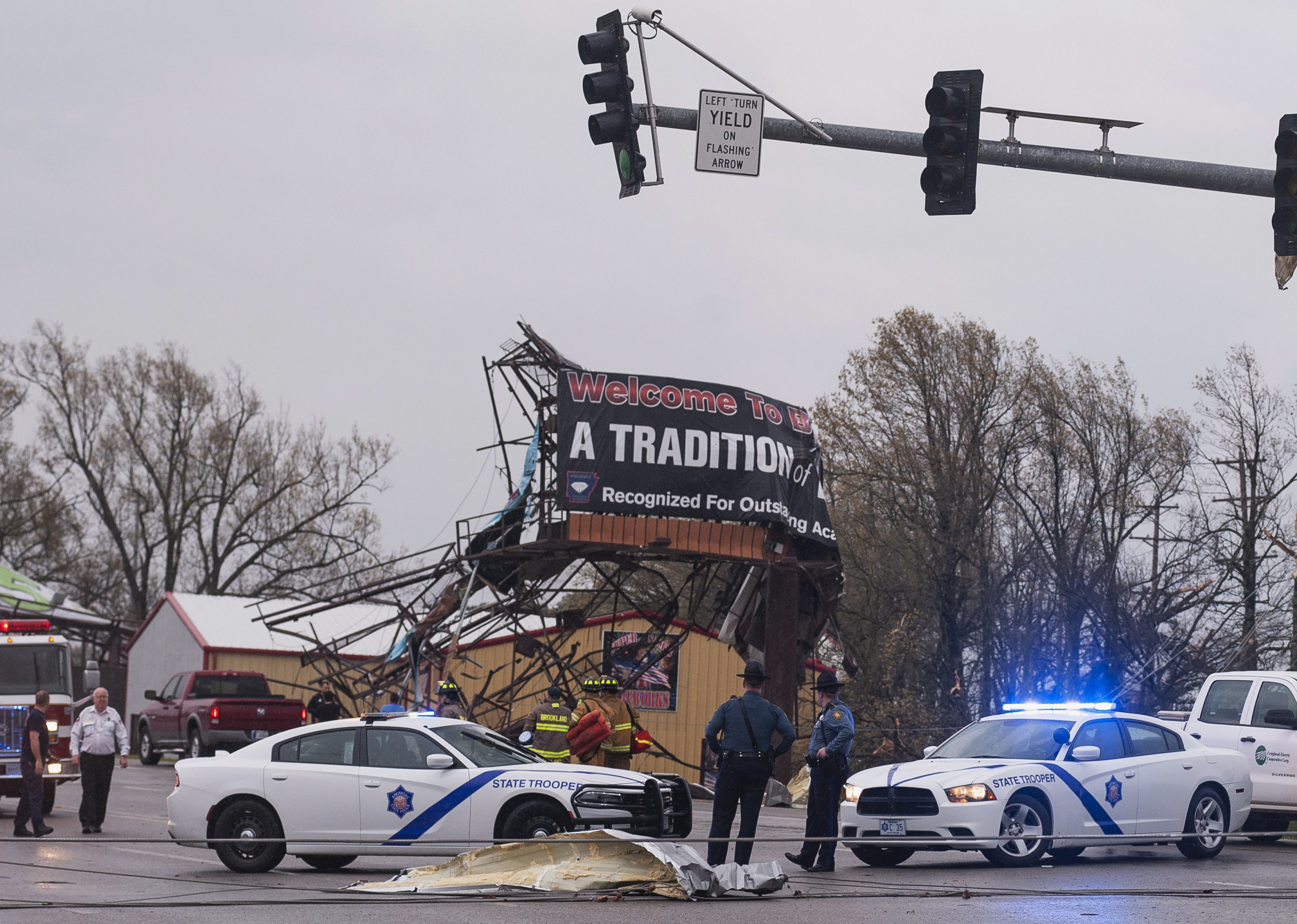 U.S. Rep. Rick Crawford, who represents much of eastern Arkansas, said on Twitter that a tornado tore through “the heart of town” and asked for prayers for first responders. Crawford said his staff and family were safe.