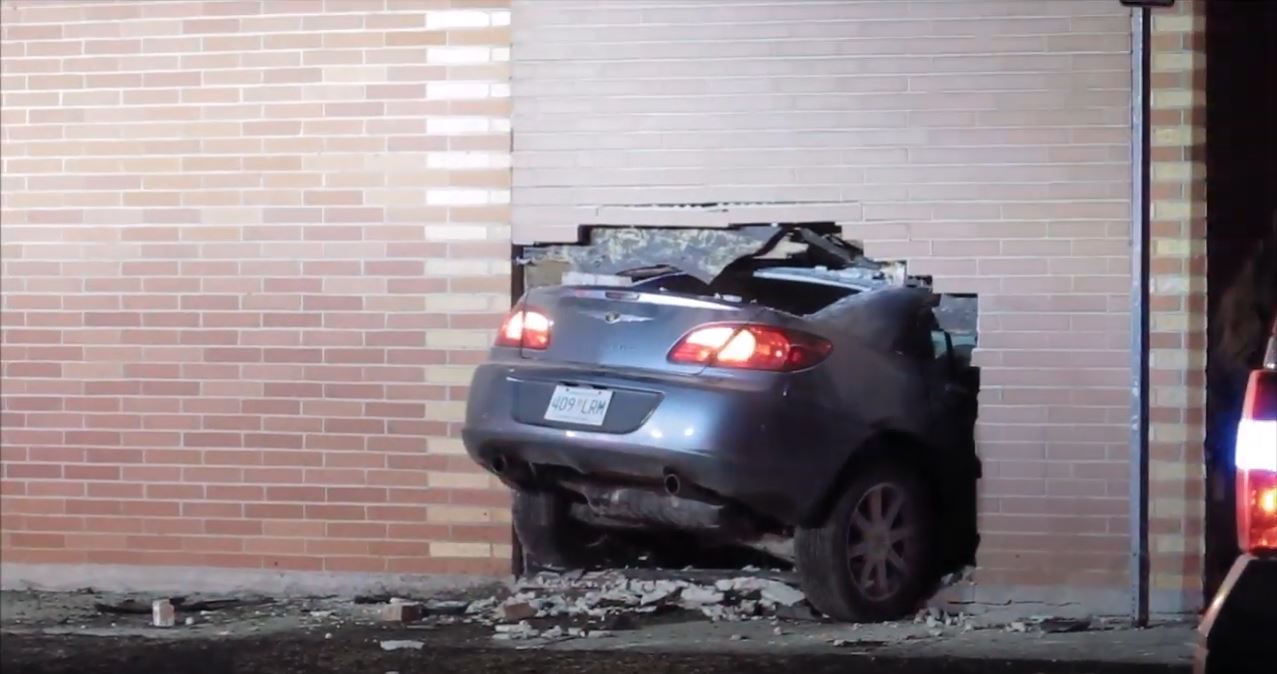 The car broke through the brick wall and came to a stop inside the building, say police. The driver was looked at by EMS on the scene for any potential injuries. No medical treatment was required, say police.