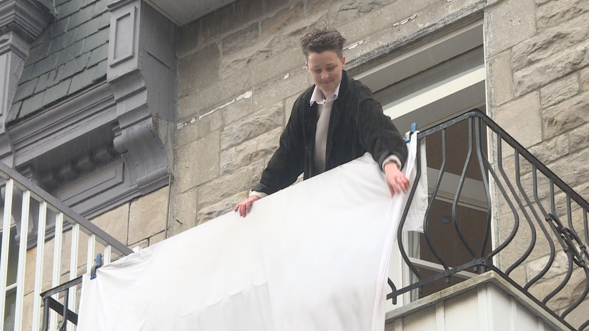 Doyle is also taking part in the “white sheet campaign”, a Montreal-based online initiative where people hang white sheets outside their balconies and doors to show their support for a rent strike or the cancellation of payments.