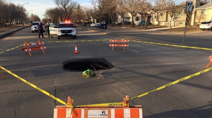 The City of Regina is currently repairing a sinkhole that appeared on McCarthy Boulevard between Brunskill Place and Fourth Avenue on Friday night.