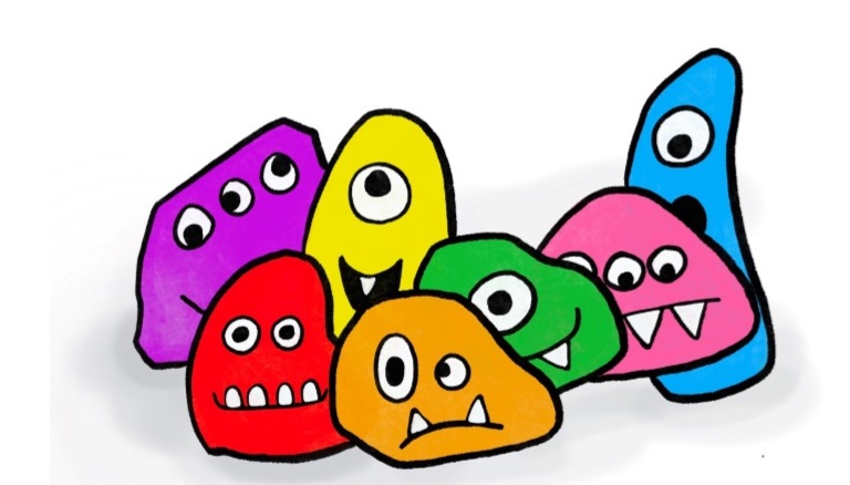 The story describes a kaleidoscope of different-coloured “rock monsters,” each of whom represents a different message during COVID-19.