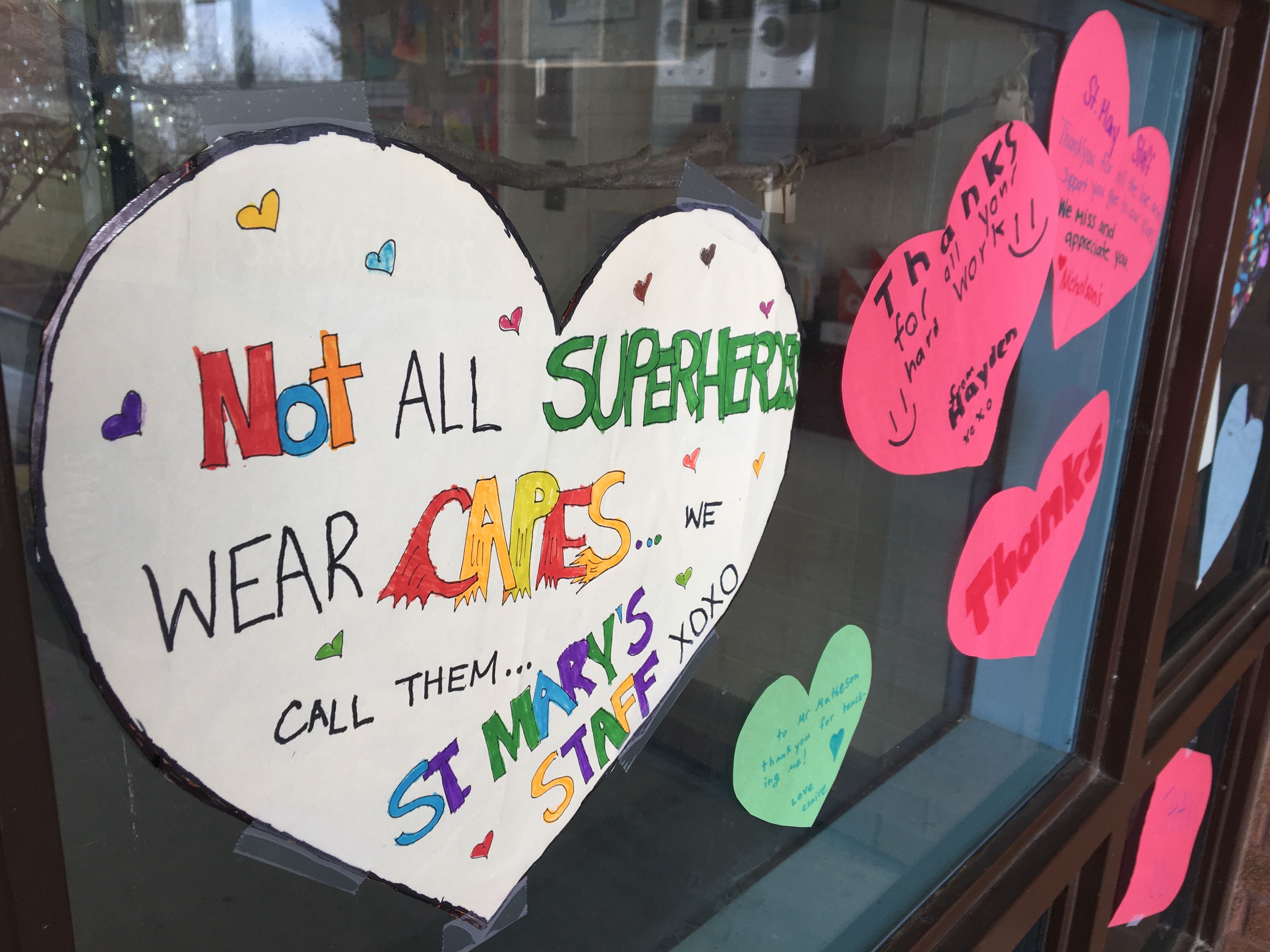 Sweet messages were left by students, parents and family all over the doors at St. Mary Catholic School in southwest Edmonton’s Riverbend area.
