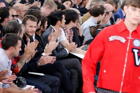 Stylish and coiffed David Beckham looked approvingly on from the front row.