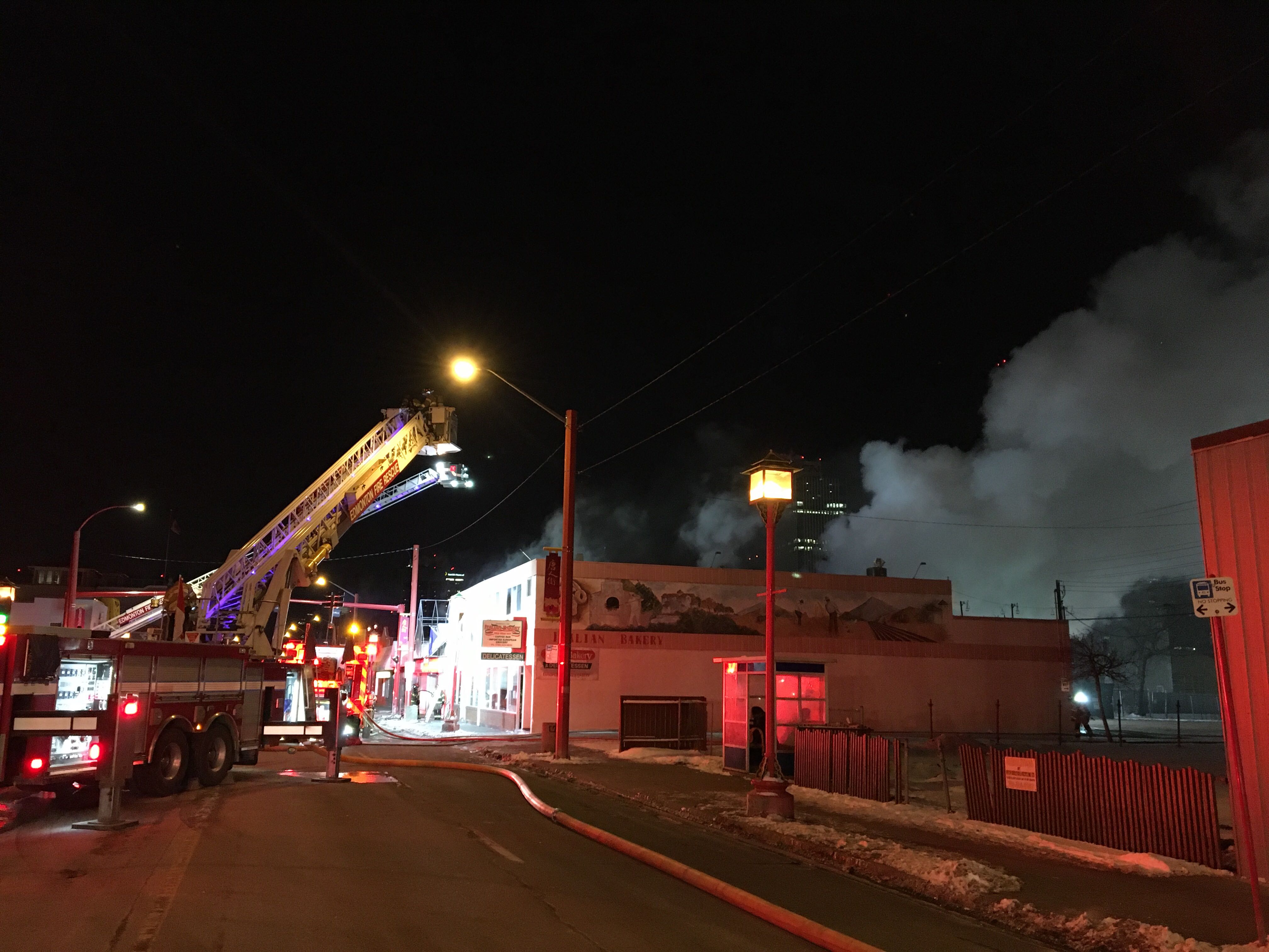 At around 4 a.m., firefighters were called to a fire at a building in the area of 106 Avenue and 97 Street. The affected building houses the Italian Bakery, although fire crews on scene Friday morning could not yet say where or how the fire started.