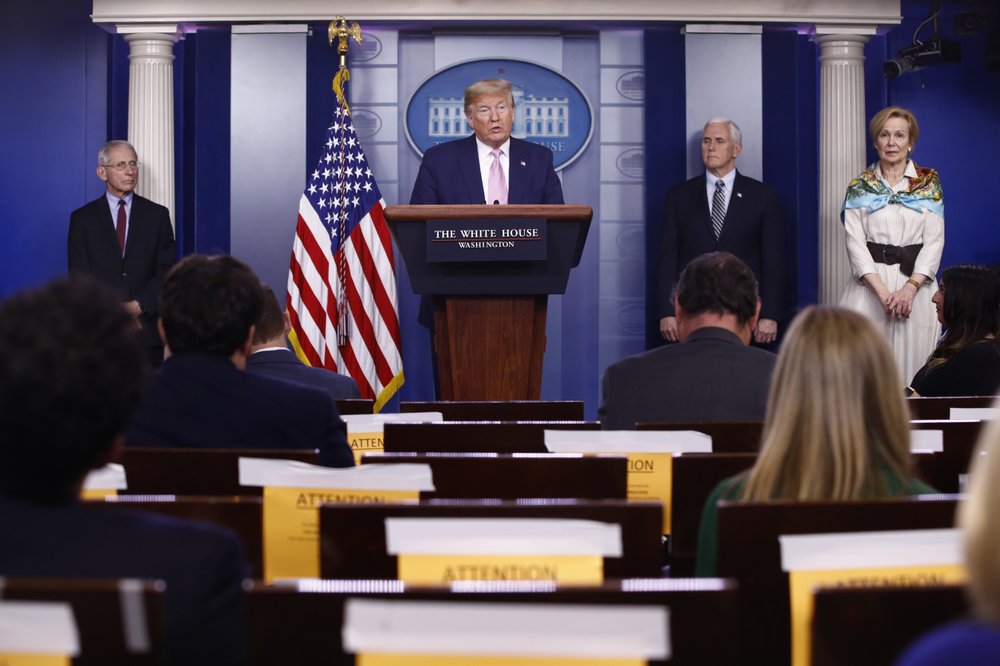 Joining Trump were Vice President Mike Pence, virus task force coordinator Dr. Deborah Birx, and Dr. Anthony Fauci, the U.S. government’s foremost infection disease expert. Each stood far apart from one another on the small stage.