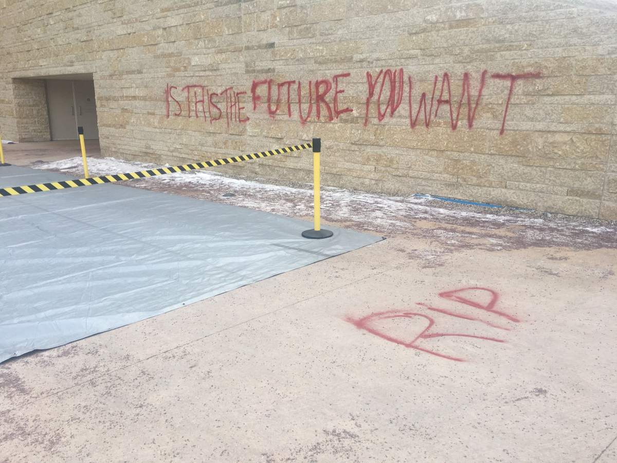 The tagging happened on Feb. 26 after some Wet’suwet’en protest blockades were dismantled across the country.