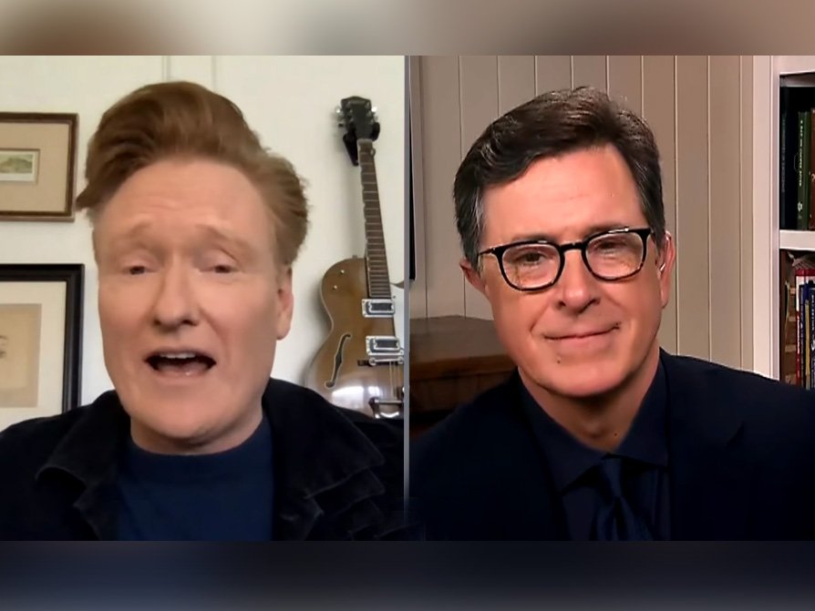 Upping the ante for late night shows in the midst of the COVID-19 pandemic, Stephen Colbert and Conan O’Brien joined forces on Tuesday night for a virtual crossover episode of both The Late Show and Conan.