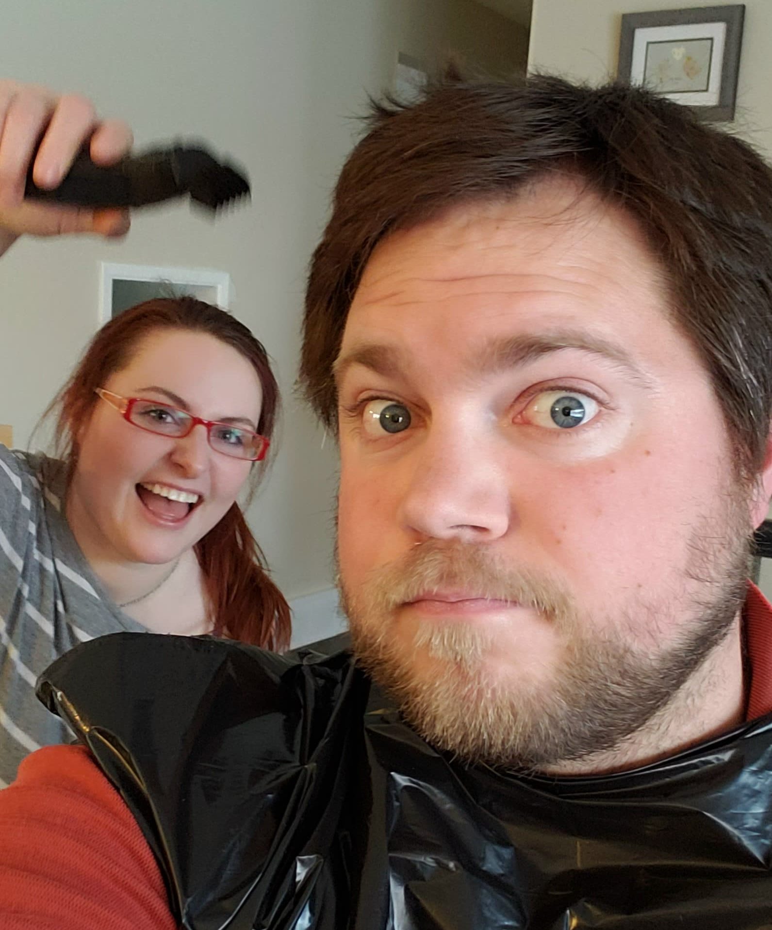 Lawren Campbell of Moncton, N.B., cut his son’s hair over Facebook live.