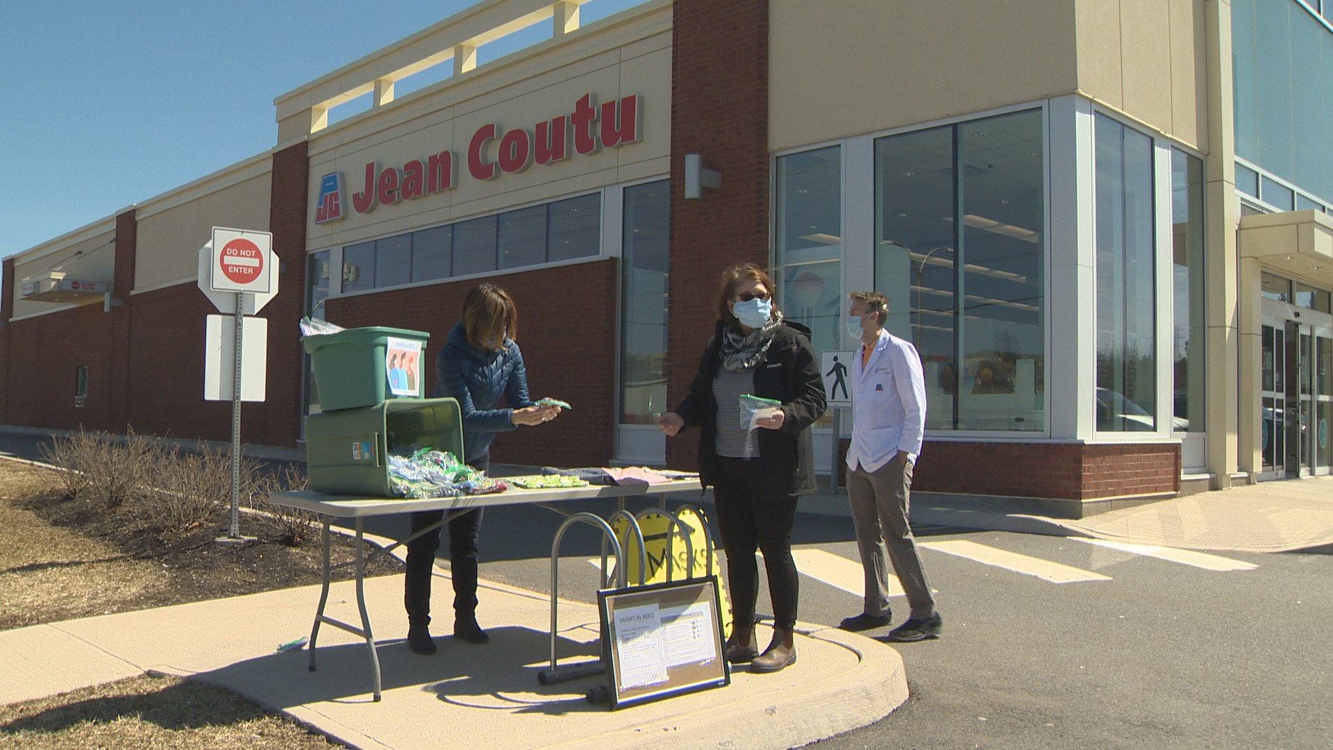 The group got together in the University Avenue parking lot of Jean Coutu on Sunday, hosting a drop-off for completed masks and a material swap to get fabric and elastics into the hands of sewers.
