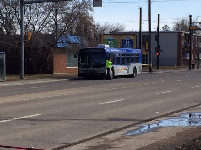 The EPS said the woman was walking north on 50 Street in a marked crosswalk with a walk signal when she was struck by a bus that was turning left onto 118 Avenue.