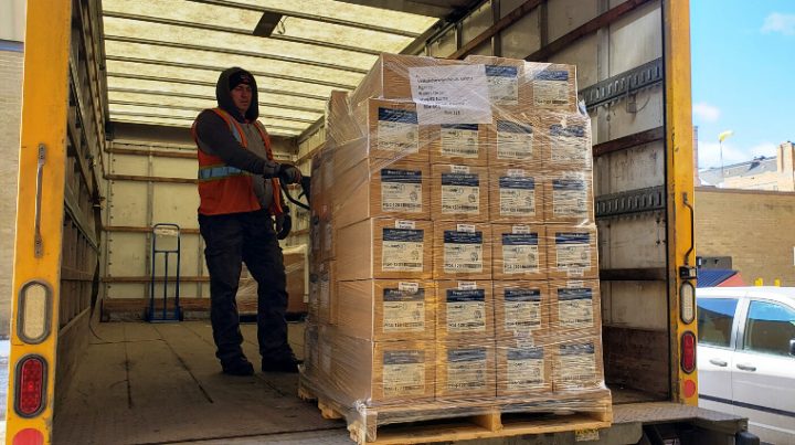 Seven pallets were shipped to a central location identified by the provincial government for distribution to health regions throughout the province, officials said.