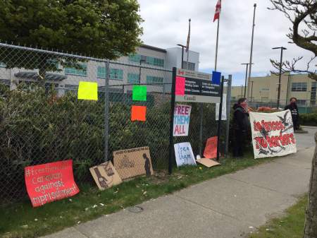 A group of protesters outside the Surrey Immigration Holding Centre on Sunday joined a nationwide call for detained migrants to be released from custody amid the novel coronavirus pandemic.