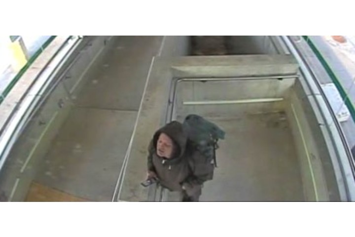 According to police, the suspect is five feet 10 inches, 180 pounds, with brown hair and a large backpack.