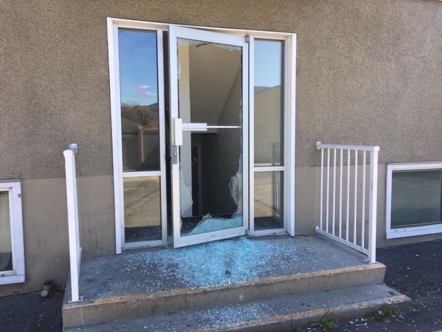 When RCMP arrived they found the rear door to the apartment complex shattered.