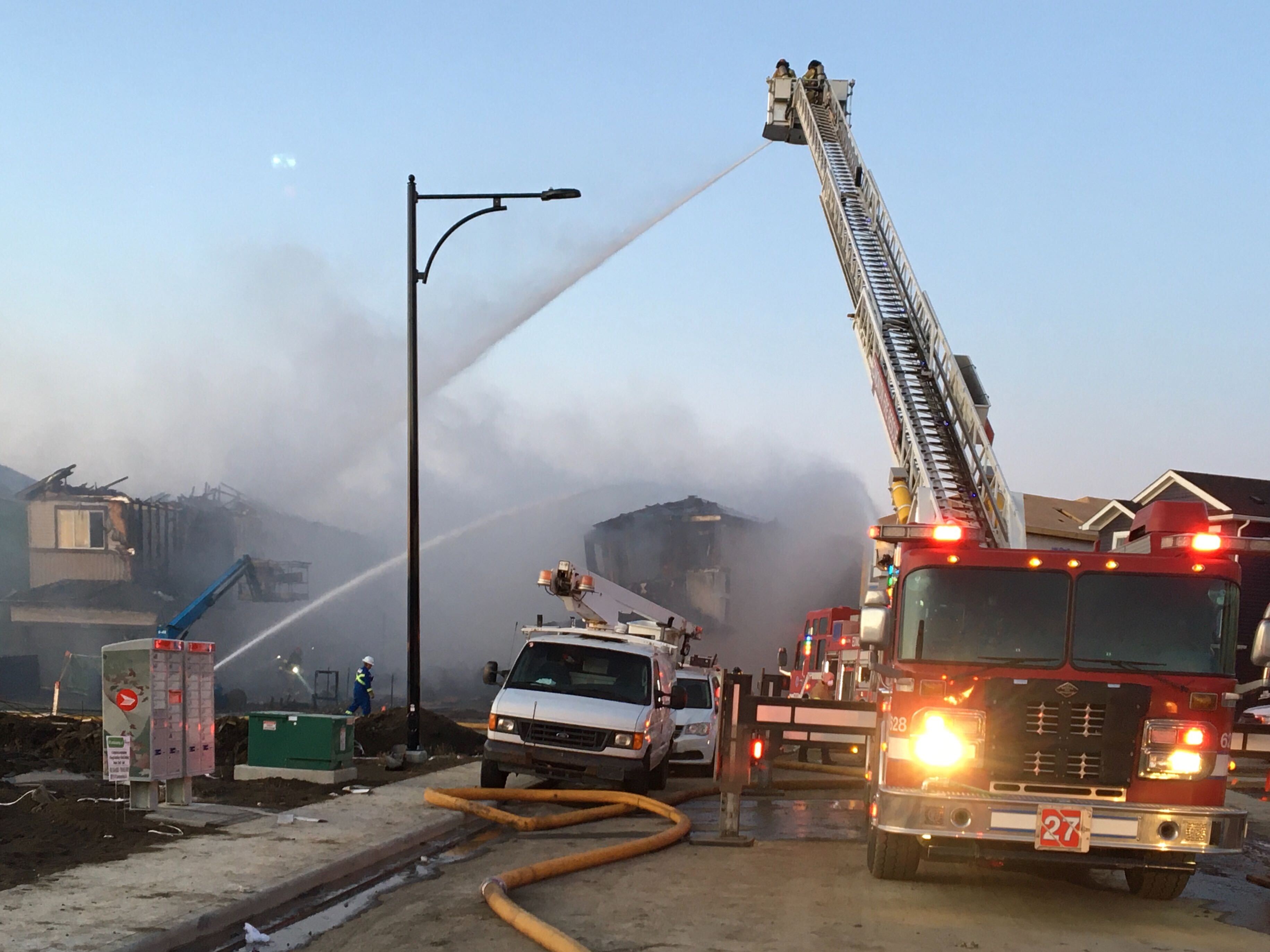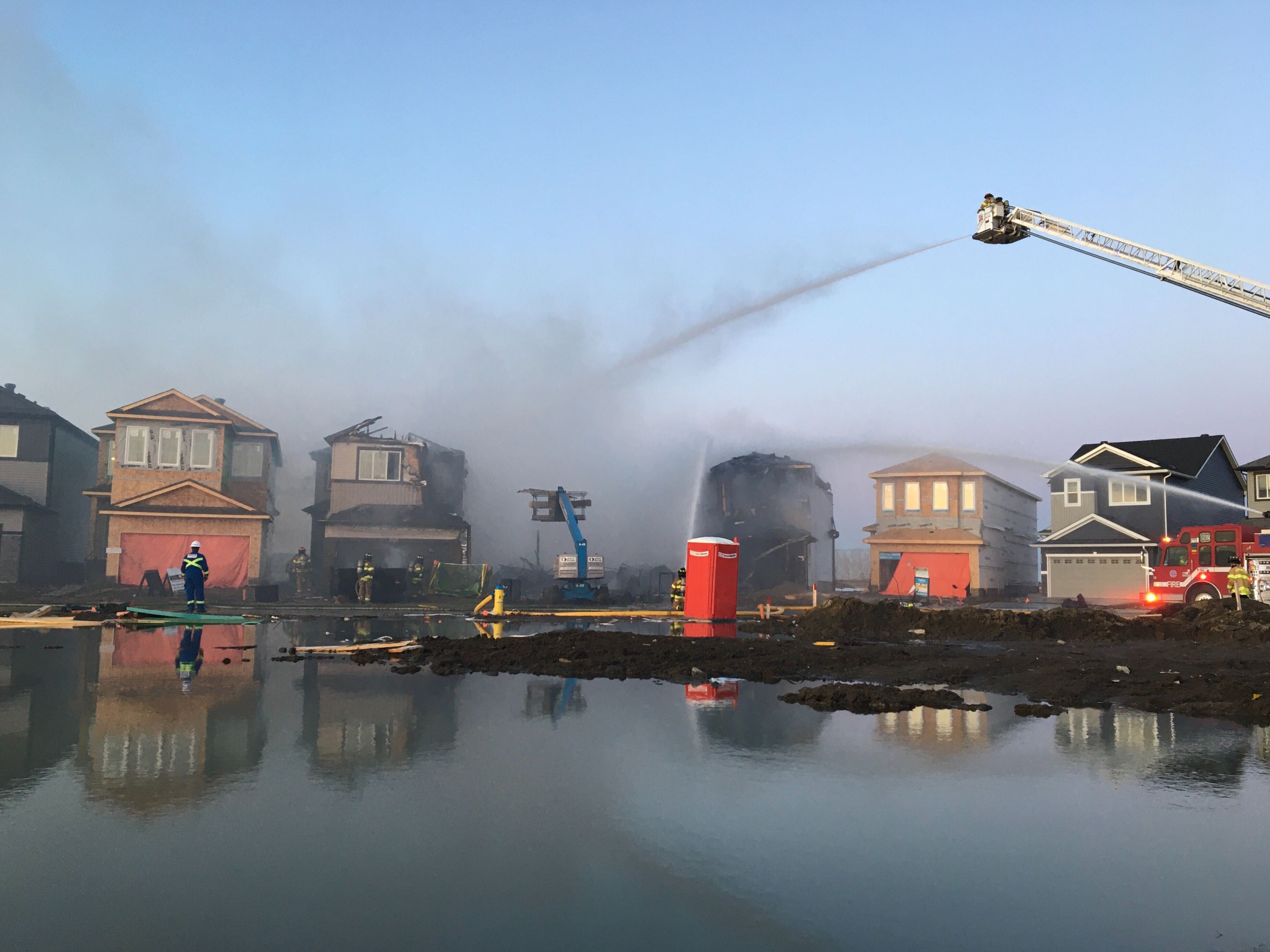 More than a dozen fire crews were called to southwest Edmonton early Tuesday morning to battle a blaze at three homes under construction in the Chappelle Gardens neighbourhood.