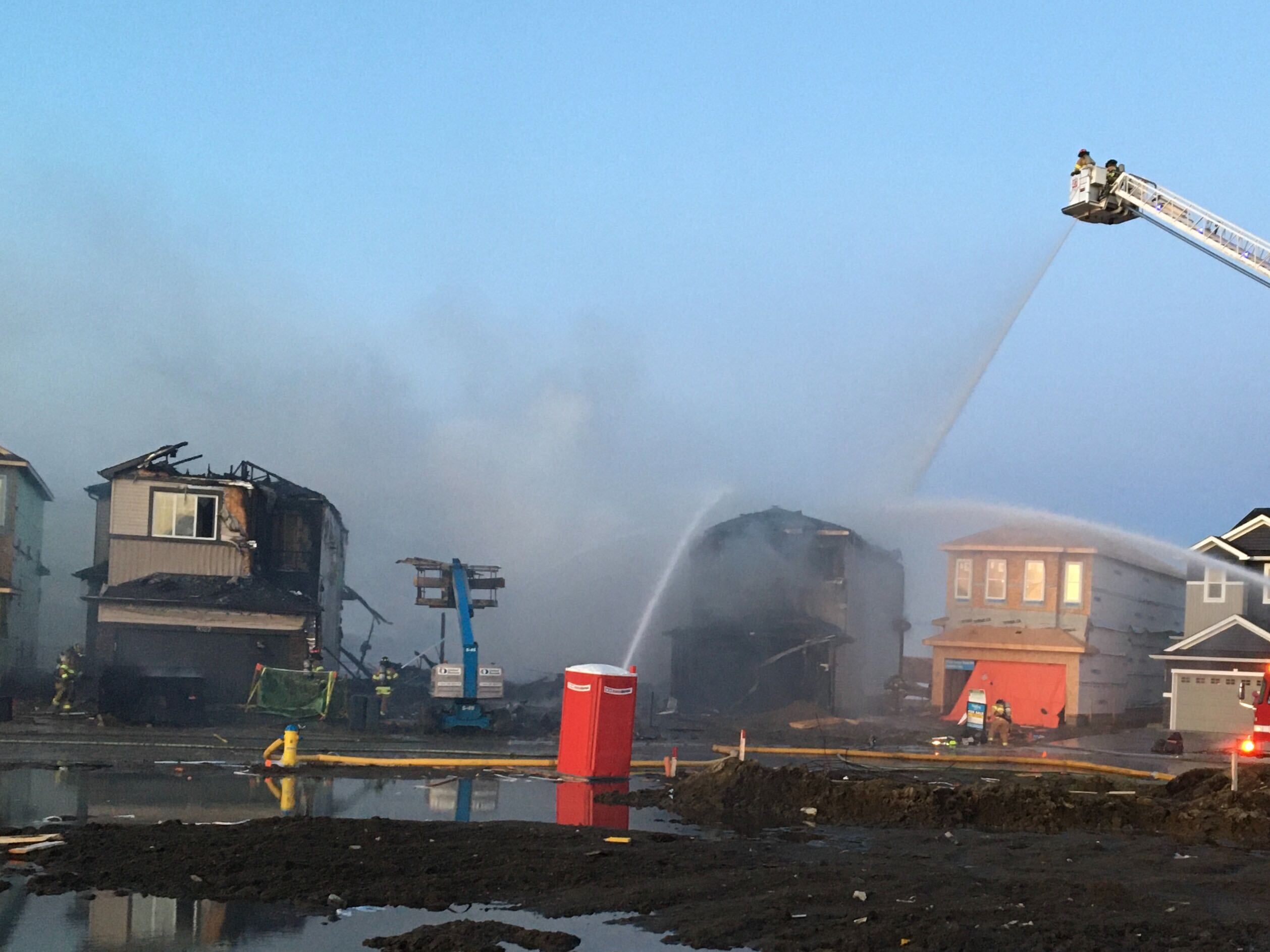 District Chief Ed Pitman said three homes were on fire when crews arrived. He said all the homes had been sided and were in the process of having their basements poured.