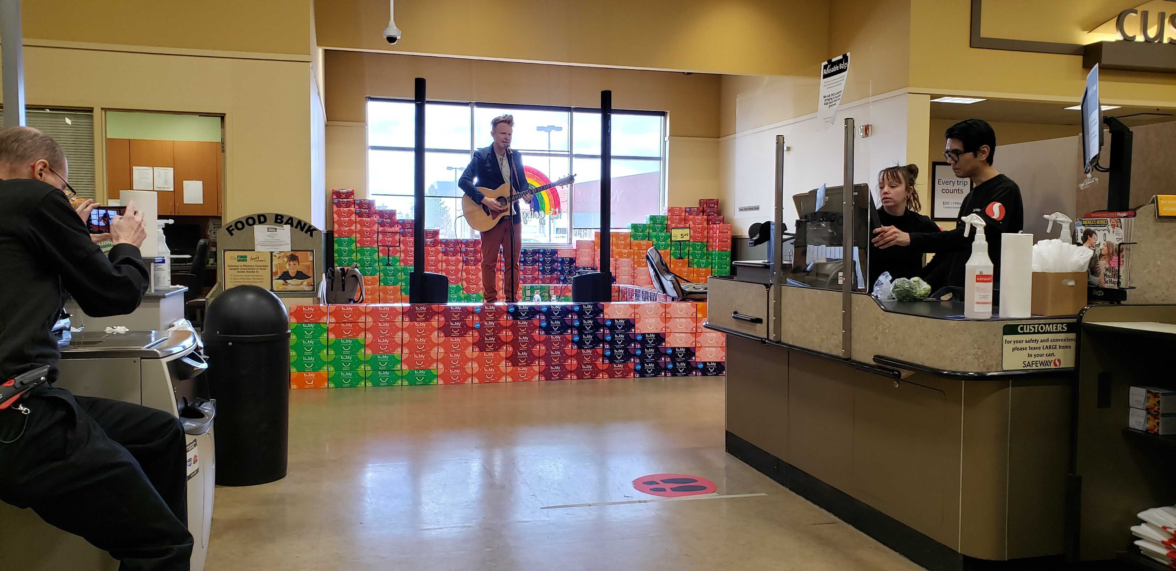 A local singer-songwriter staged a free concert in an Edmonton Safeway store Thursday afternoon to show his appreciation for front-line workers.
