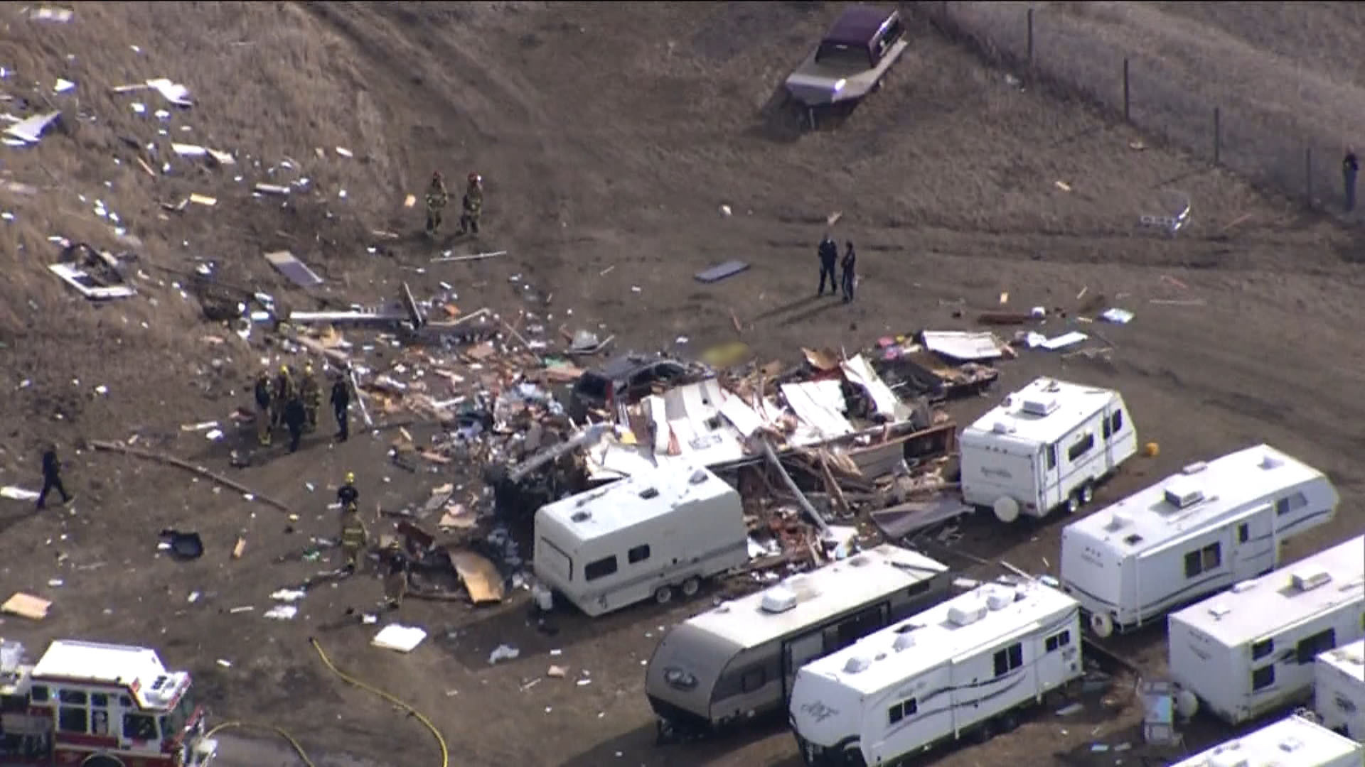 According to the Calgary Fire Department (CFD), a fire started by the explosion was out when they arrived, but debris that appeared to be from a motorhome filled the area.
